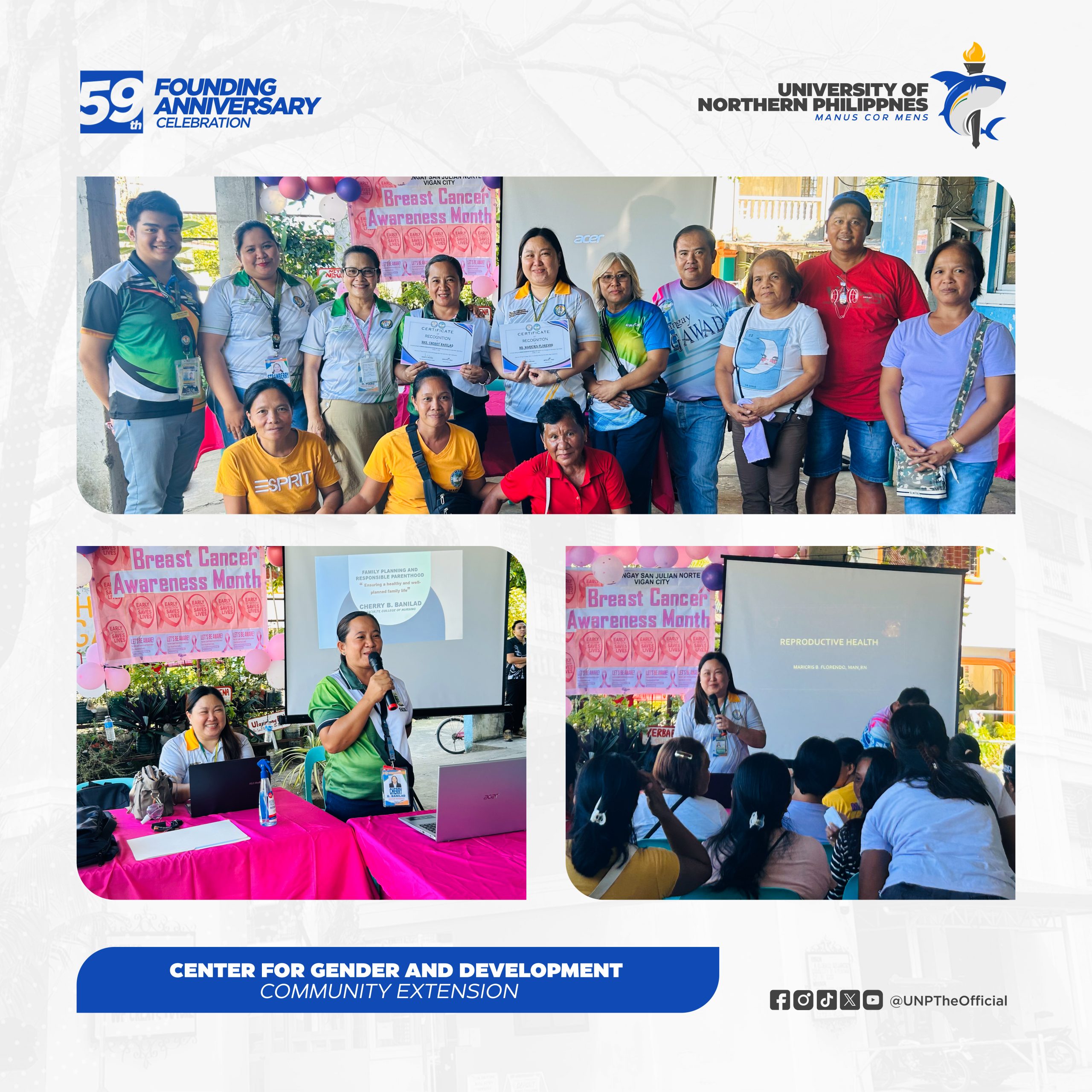 The Center for Gender and Development (CGAD) joined the UNP Community Outreach Program through a seminar on gender and health in San Julian Norte, Vigan City, Ilocos Sur on October 17, 2024. The activity is part of the memorandum of agreement  with the Brgy. San Julian Norte held on May 3, 2024.