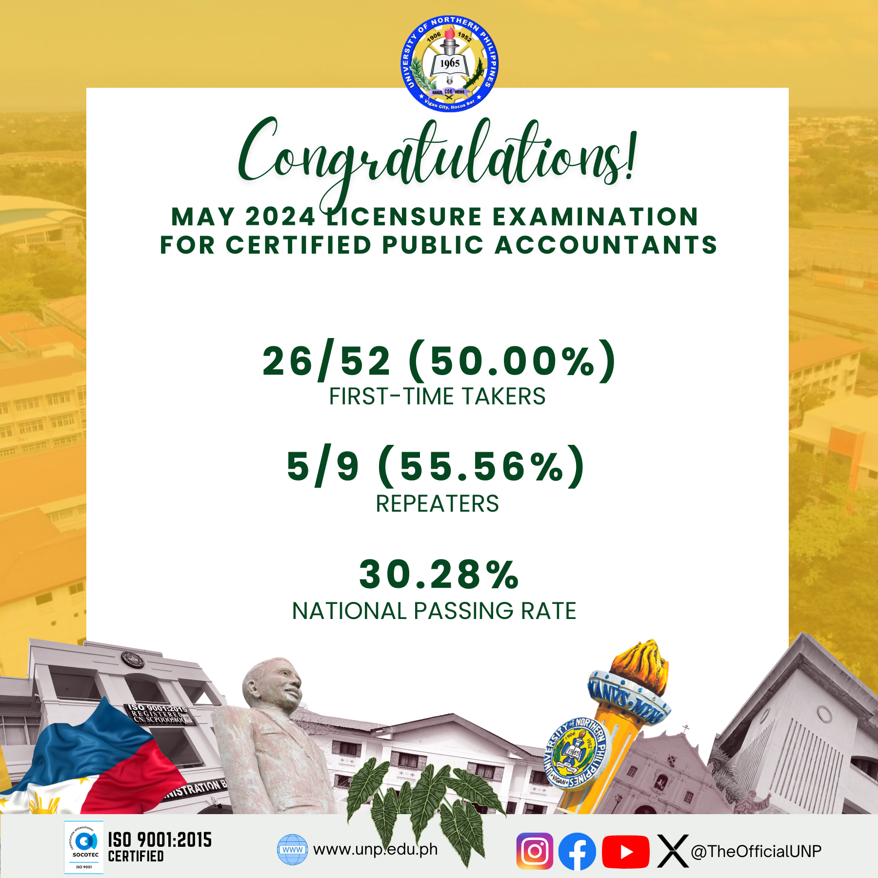 The University of Northern Philippines (UNP) is proud to announce the outstanding performance of its graduates in the recent Licensure Examination for Certified Public Accountants (LECPA). The results, released on May 31, revealed that 31 new Certified Public Accountants (CPAs) were produced by the University, marking a significant achievement for the institution.