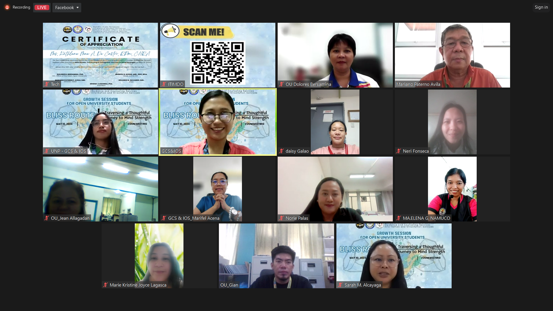 This was the highlight of the Growth Session for OU students held by the Guidance and Counseling Services and Information and Orientation Services (GCS & IOS) Office through a webinar on May 10, 2024. It zeroed in on the topic “Bliss Route: Traversing a Thoughtful Journey to Mind Strength.”