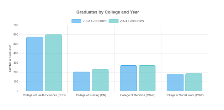 This data shows a consistent and growing contribution of graduates dedicated to health and social services, with over 25% of the University’s 2024 graduating class entering these vital fields.